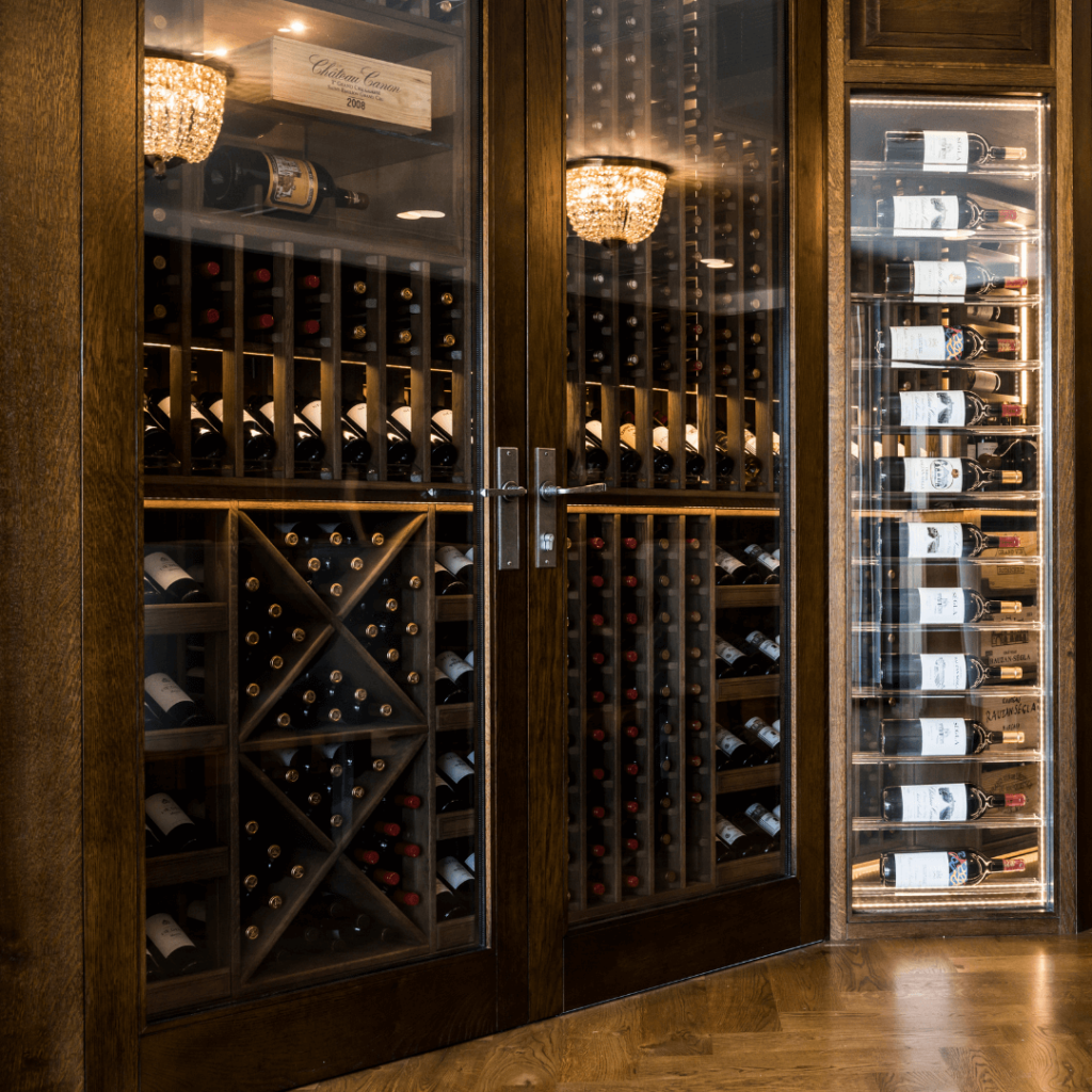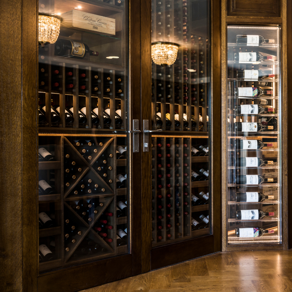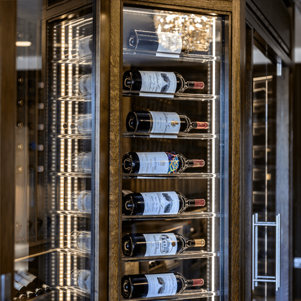 • Additional storage created within the glass walls of the cellar, using acrylic rods.
