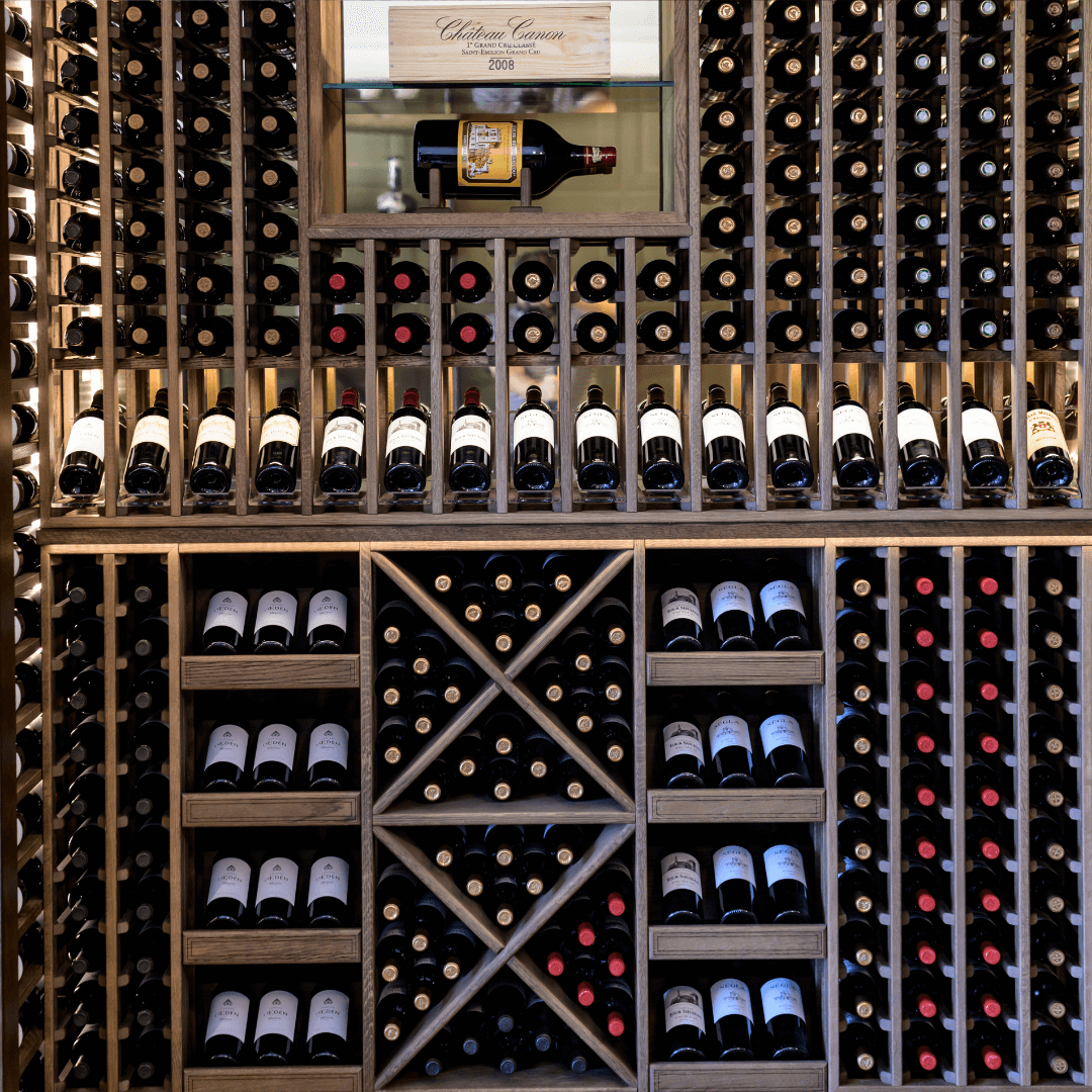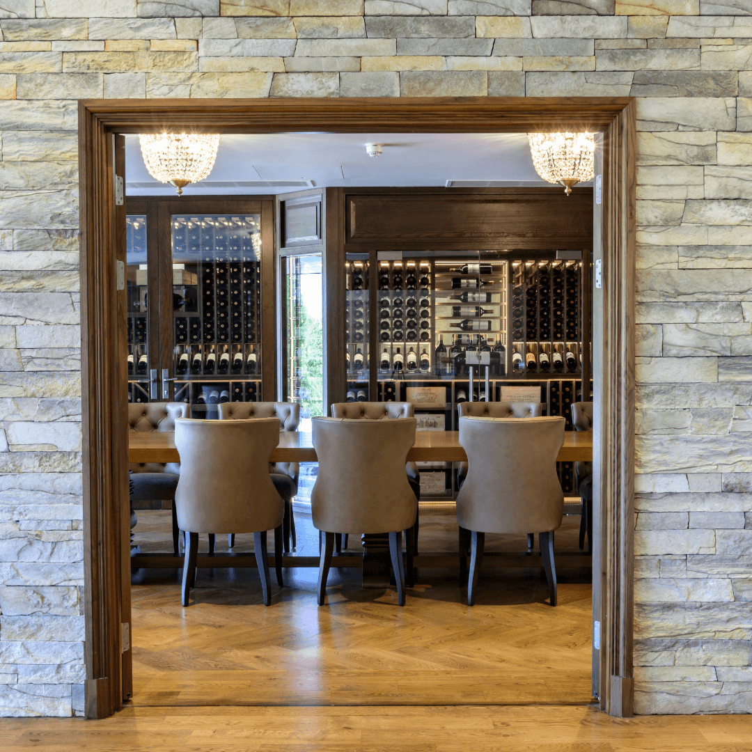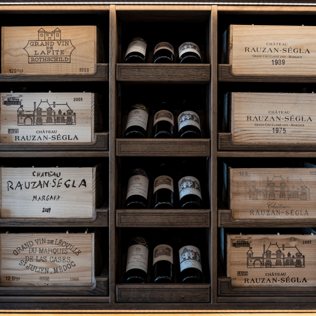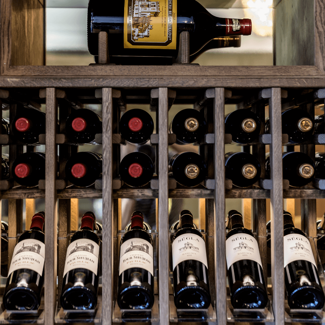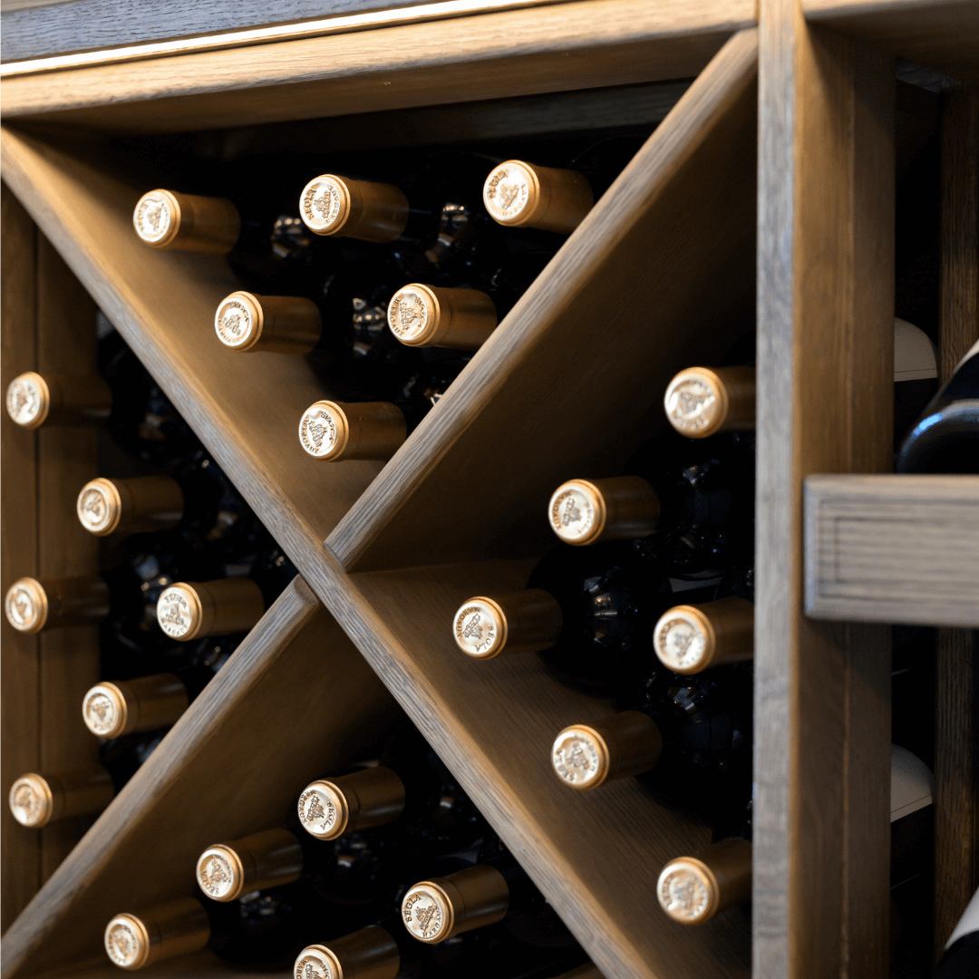 This bespoke oak wine wall sits center stage within the private dining room at Holland & Holland Shooting Grounds, acting as both a functional cellar and a refined architectural focal point. The design was carefully developed around the restaurant’s wine list, with particular emphasis on showcasing bottles from Château Rauzan-Ségla, a Bordeaux estate within the wider corporate portfolio, and a natural feature in the Shooting Grounds’ cellar.