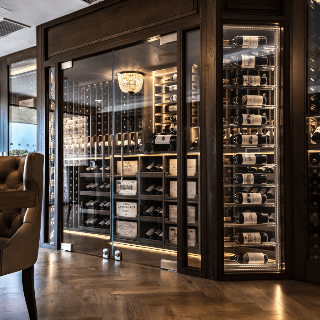 Set within the historic Holland & Holland Shooting Grounds in Northwood, this bespoke wine wall was commissioned as part of a broader enhancement of the venue’s dining and hospitality offering. Renowned for its world-class shooting facilities, elegant lodge, and refined British heritage, the Shooting Grounds required a wine display that would sit comfortably within its traditional surroundings while reflecting the same level of craftsmanship and understated luxury for which the brand is known.