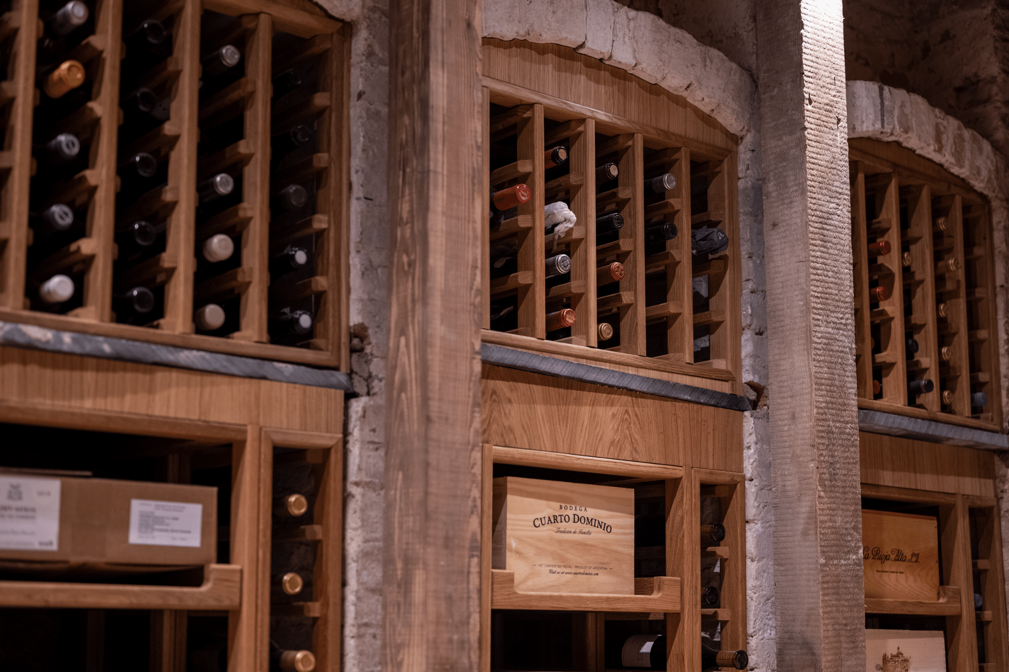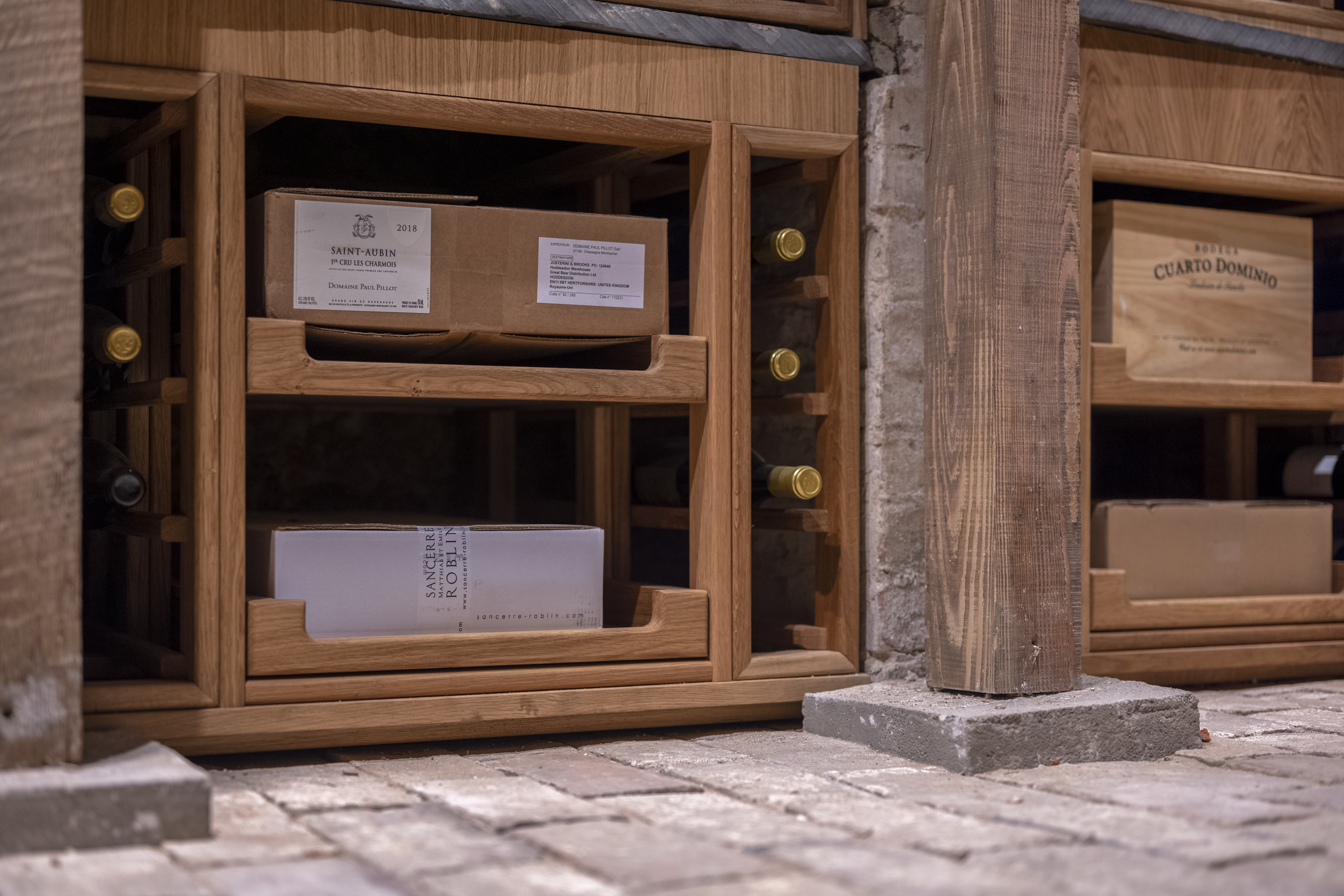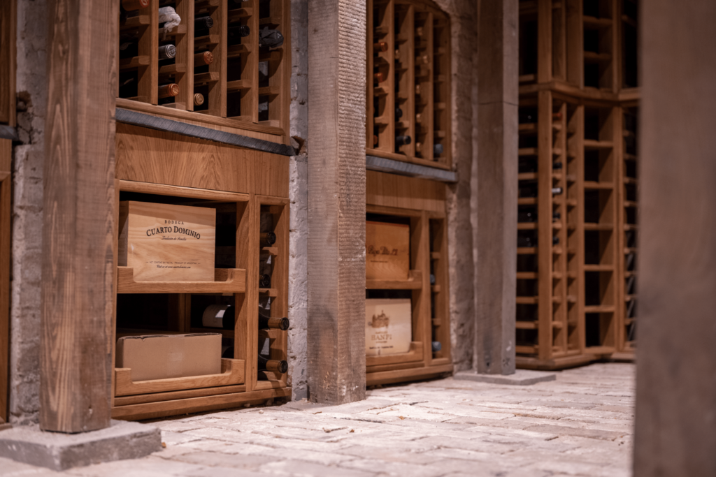 Every element of this cellar was made to measure. The walls, archways, and alcoves were far from uniform, typical of a heritage property, but through detailed site surveying and in-house manufacturing, Sorrells was able to produce joinery that fits flush against even the most irregular surfaces.