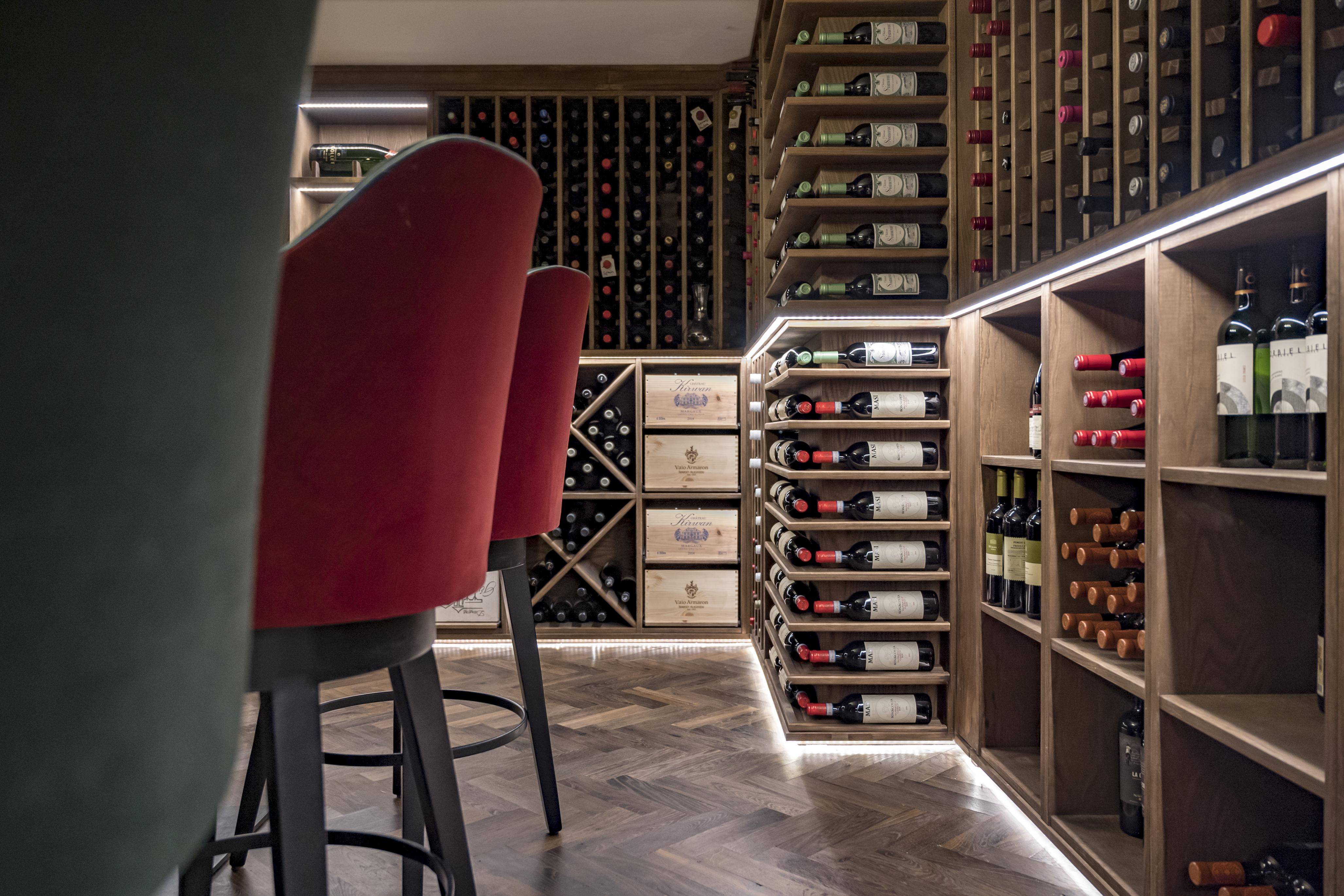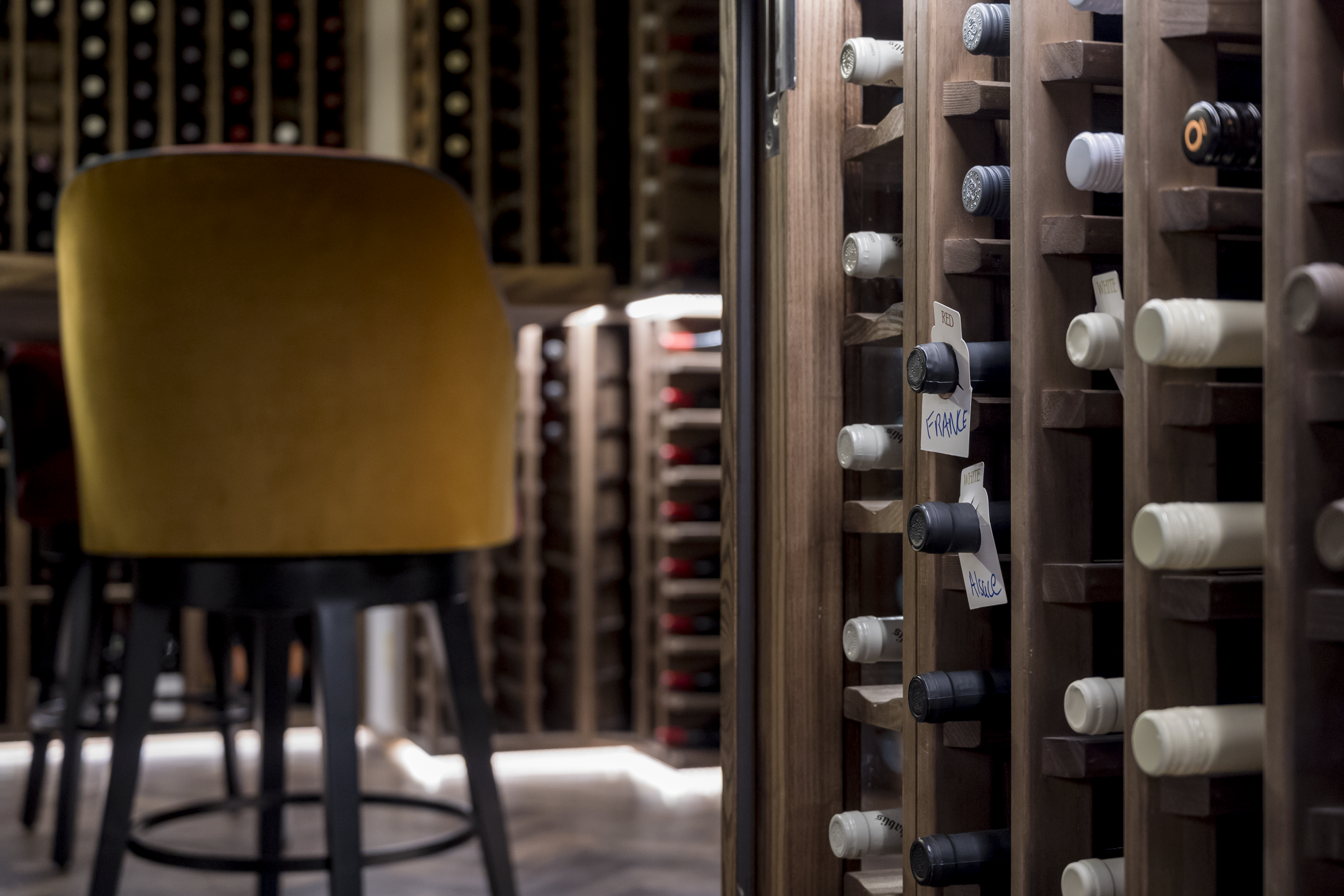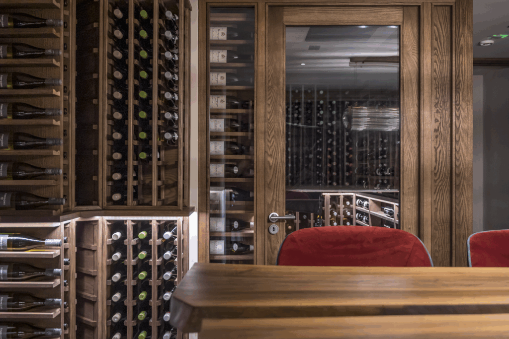 This is a wine cellar designed not just to store wine, but to frame the dining experience itself—a space where the collection becomes part of the atmosphere, and every detail supports the theatre of great food and service.