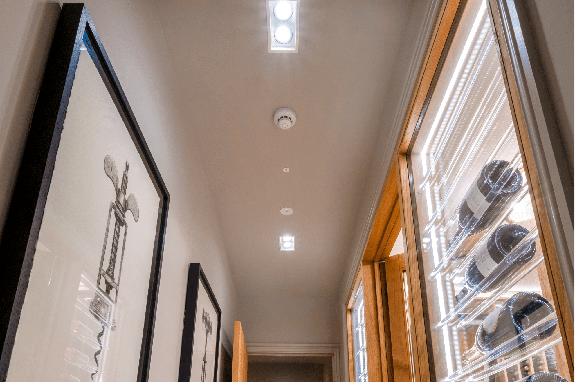 This White American Oak Wine Cellar, epitomises the perfect marriage between functionality and aesthetics, creating an unforgettable space that oenophiles and design enthusiasts alike can appreciate. The space is light thanks to the natural wood and soft lighting, making an airy space in what was a dark basement cellar.